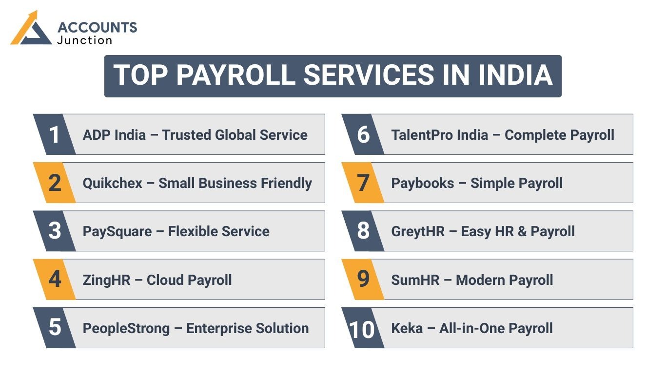 ADP India helps large companies process payroll. It calculates salaries, taxes, and deductions automatically. Systems connect easily with HR and accounting software.